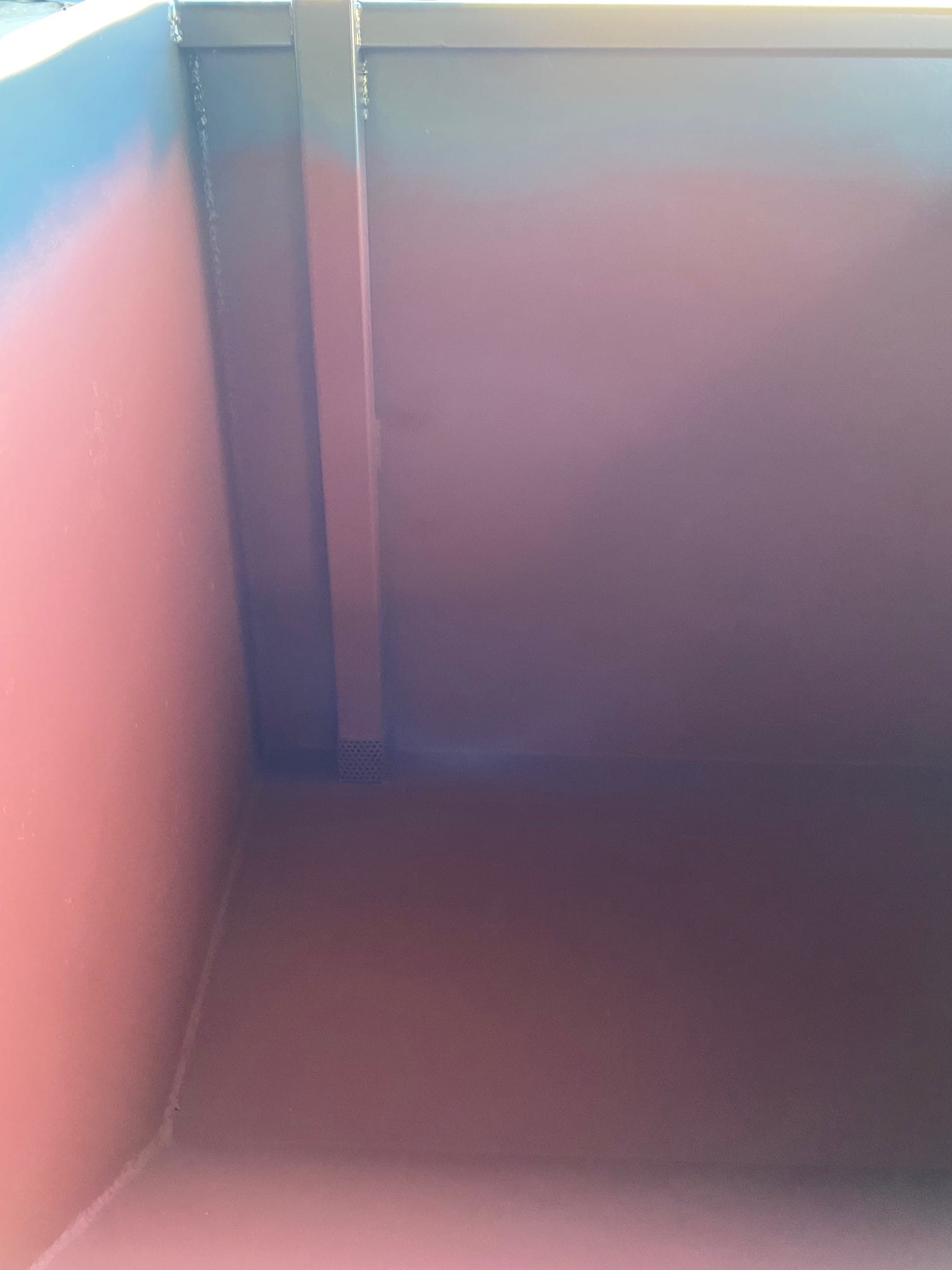 Pojemnik jest wykonany z blachy CERTYFIKOWANEJ o grubości 3 mm, podstawa posiada liczne wzmocnienia. Kontener jest częściowo gięty, co automatycznie przekłada się na większą wytrzymałość i dłuższą trwałość produktu. Pojemnik może służyć do przewozu różnych materiałów sypkich, takich jak: